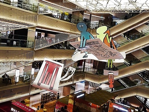 1階の入口から入り、エスカレーターに乗ると2階から上が吹き抜けになっている。