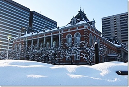 以前からこの建物の雪景色の写真を撮りたいと思っていたので、やっとチャンスが来た。しかし構内には入れないし、道路側の壁が高くて、思うような写真にはならなかった。