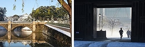 ここにも皇居に出勤する宮内庁職員が歩いているが、その先の雪の深さをまだ知らない。驚くことに、桜田門をくぐって走って行ったランナーがいた。