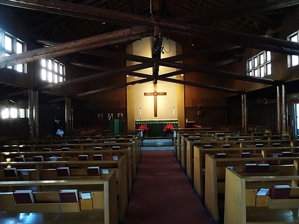 目的の教会は木造で素朴で、歴史を感じさせられる。