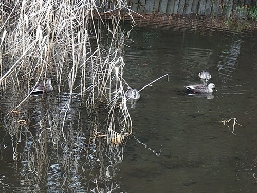 今回の目的は「蝋梅」の撮影だったので撮影出来たらもう終りで、ゆっくりと先へ進んで出口に向かった。池では鴨が遊んでいる。
