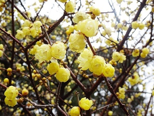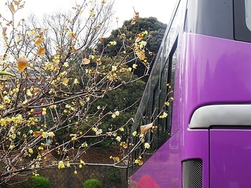 ここにも蝋梅があると調べておいたので探してみると、大型バス駐車場の横に数本の蝋梅があった。