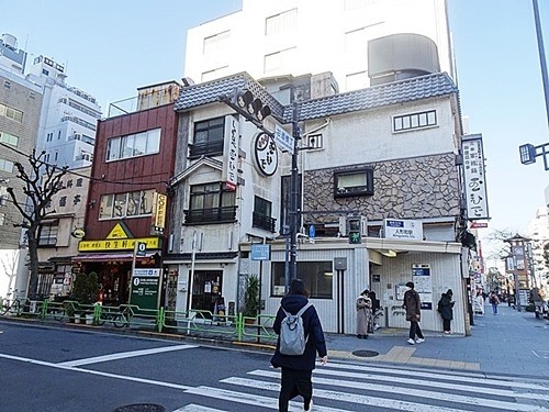 大観音寺の少し先に「カラクリ時計」が立っている。更に進むと地下鉄「日比谷線」の駅に降りる階段がある。その上に1760年創業の親子丼で有名な「玉ひで」があるが、現在はビルに建て替えるために長期休業をしている。