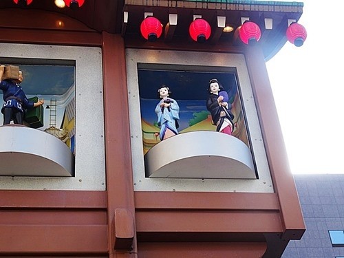 下の段では落語家が話を始める。しかし噺家だけはガラス越しなので、写真には綺麗に写らなかった。こちらのカラクリ時計は初めて見るので、どういう展開になるか分からなかったので動画撮影はしなかった。