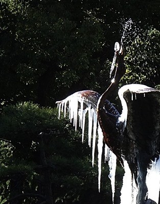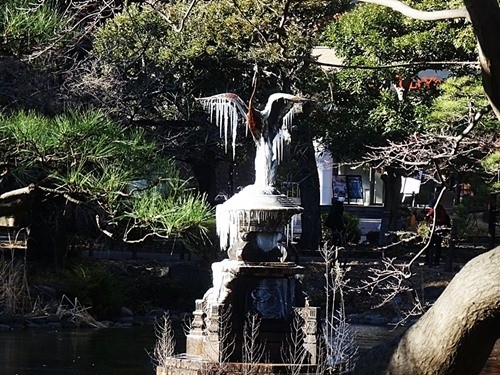 朝から寒い中を歩き廻ったが、鶴の噴水の凍結写真を撮れたので、「まあ良し」とするか。