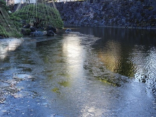 二重橋の前に立ち、お堀を覗いたが凍っていなかった。