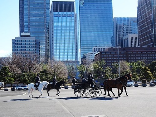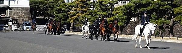 坂下門の方を見ると、馬車の一群がやって来るのが見えた。