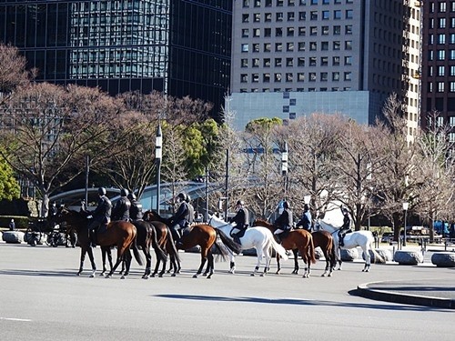 帰るには早過ぎるので、『皇居二重橋のお堀は凍っているかもしれない』と思い、そちらに向かう。皇居前広場はいつもと違い、2~3人しか観光客が来ていない。