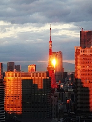 私が午前6時に起き出すと、冬の間はオレンジ色にライトアップされたままの東京タワーが見える。夕方になると、季節によっては太陽が東京タワーの柱の中を落ちて行く。