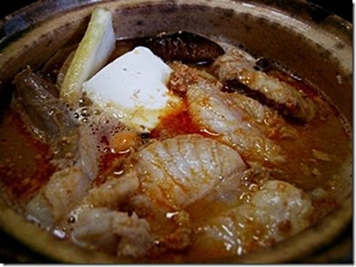 漁師料理の加納屋の「あんこうのどぶ汁」で、贅沢な鍋ものだった。