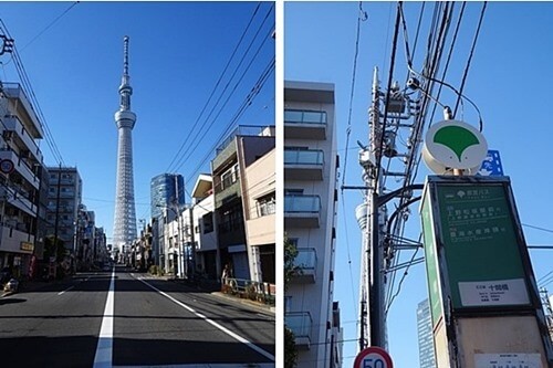 東京スカイツリーは「曳舟駅」の1つ隣の駅「押上」にある。