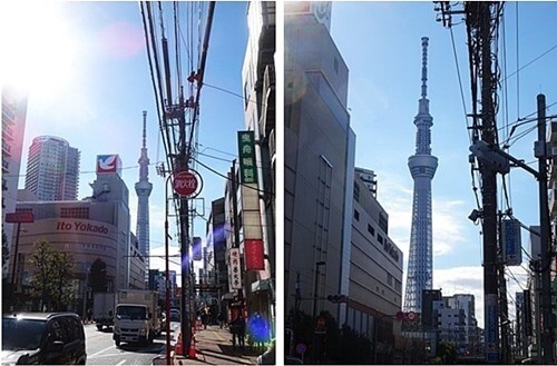 広い道路に出てみたら、私の思っていた方向と逆に東京スカイツリーが見えた。