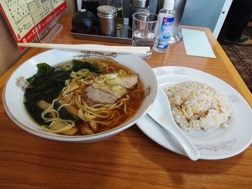 メニューには色々あるが、町中華の基本である「ラーメンと半チャーハン」を頼んだ。