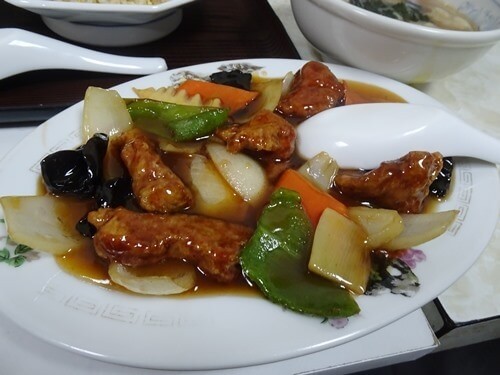 壁に貼ってあるメニューから、3人で食べ切れる量として、「炒飯」2人前、「餃子」2人前、「酢豚」1人前、「レバー野菜炒め」2人前、「ワンタンスープ」1人前を注文した。メニューが自分でプリンターで印刷したらしく真新しいので、どうやら2月から値上げをしたのではないかと思う。