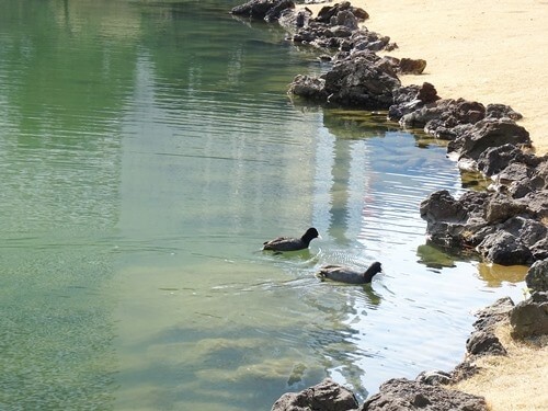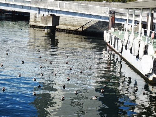 東京みなと丸が係留される場所では、鴨が私をバカにするように泳いでいた。