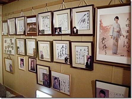 旅館内の通路には芸能人の写真付きの色紙が・・・。