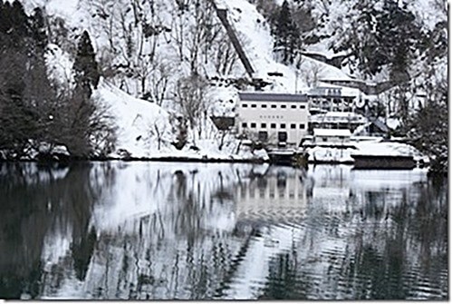 この発電所を作るためのダムで、大牧温泉は孤立した。(船の中から撮影)