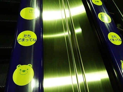 小さな子供の為かベルトに「たちどまってね」、「しっかりつかまってね」、「ぎゅ」などのサインが連なっている。私は思わず、ベルトを掴んでしまうのである。