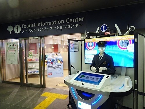 エスカレーターを降りると、目の前に「ツーリスト インフォメーション」があり、入口の横に人形の「AI」が待ち構えている。乗客は誰も見向きもしないで、先を急いでいる。以前に私はここで人形に質問を投げかけてみたことがある。