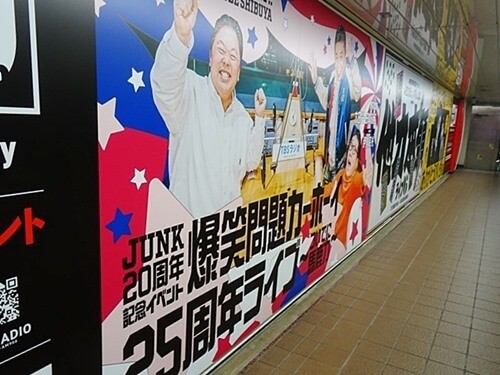 すると右手の壁一面に巨大な広告が現れる。これは時々、入れ替わるが、ほとんどの場合、若向きの広告である。地下通路の真ん中の柱には大きな液晶画面が埋め込まれていて、はるか先まで同じ映像が映し出されている。