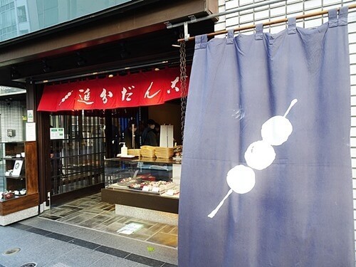 「追分だんご本舗」で、「みたらしだんご」を4本と、「こしあんだんご」を2本買った。そして先を急ぐ。その先の右側は文房具や画材用品で有名な「世界堂」がある。