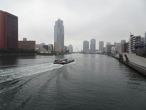 勝鬨橋の上から上流を見る。