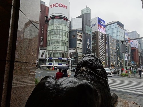三越のライオンの後ろから見たら冷たい雨だった。