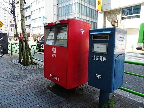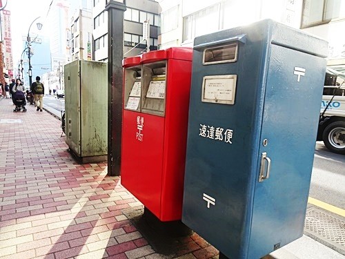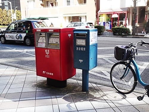 見慣れた四角の赤ポストの隣に、少し小さめの青いポストがあった。