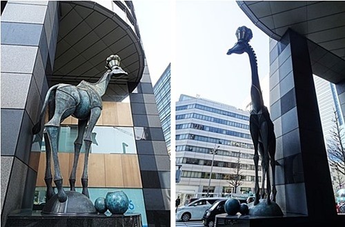 日本橋3丁目の交差点にあるビルの前には、巨大なキリンの彫刻が立っている。