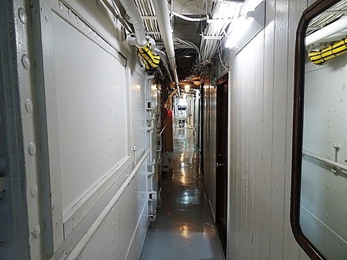 見学は順路を示しているので、それに従う。船内は通路も狭く、思ったより狭い。