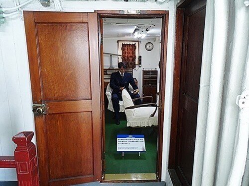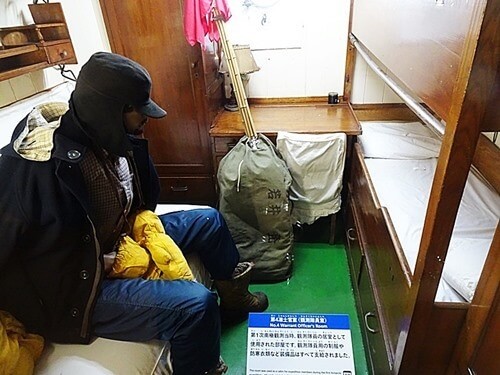 通路両側には船員の部屋がある。役職により部屋の造りが多少違う。部屋には二段ベッドが置かれているが、かなり長さが短いように感じた。当時の日本人は背が低かったのだろう。