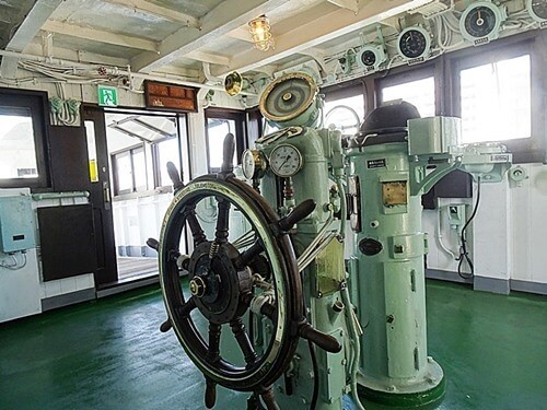 調理室、医療室、食堂、機関室などをドアの外から見るようになっている。一番上には操舵室があり、その近くに船長室があるが、ここだけは近くに寄れないので中が良く見えない。私の見学の間にも誰も来ない。約20分くらいを掛けて、ゆっくりと船内を見て廻った。