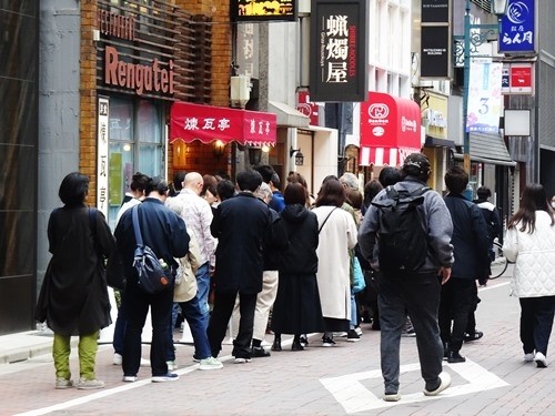 翌日の17日に私はたまたま煉瓦亭の前を通ったら、長い行列が出来ていた。