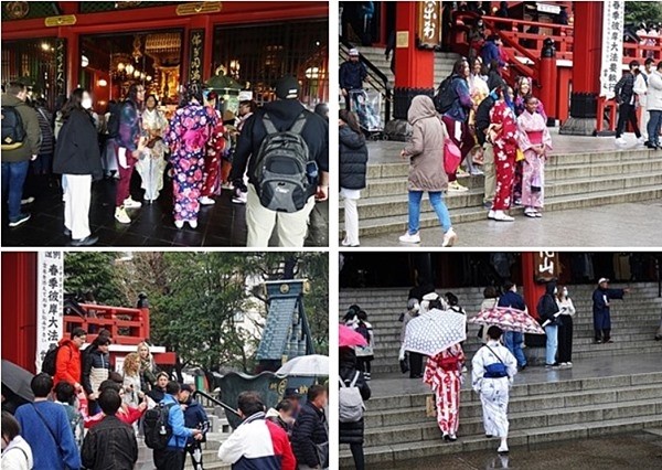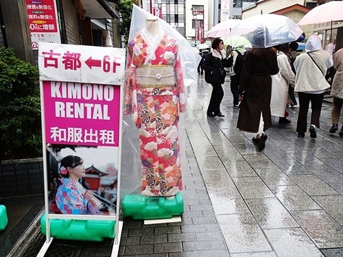 全体の人数から見て(修学旅行の学生を除く)、外国人観光客の方が日本人より多いと感じた。しかも貸衣装を借りて歩くのが流行りのようで、和服姿の若い外国人女性が多い。