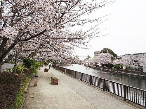 『最近では耐震護岸整備及び遊歩道整備が全川3キロにわたり完成した。春には20種、718本の桜が遊歩道を行き交う人々の目を楽しませている』と、調べて分かった。