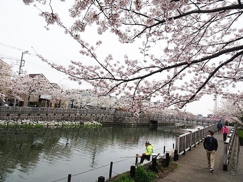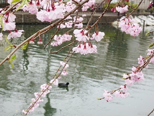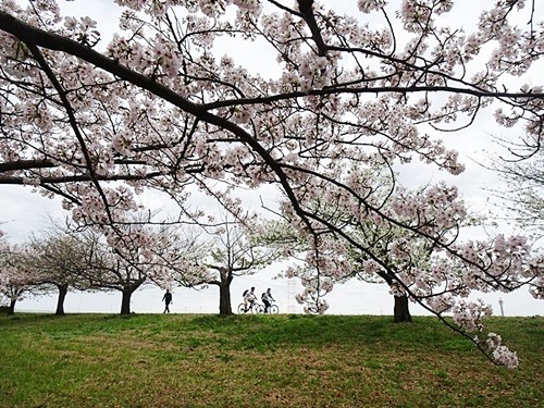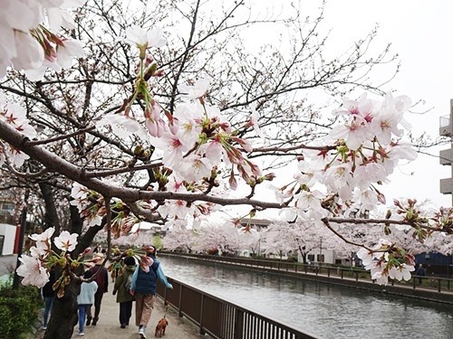 川の両側に植えられた桜の木は、まだ若い。この日は丁度、天気も良く満開でラッキーだった。ここはソメイヨシノだけでなく、大島桜も多く植えられている。