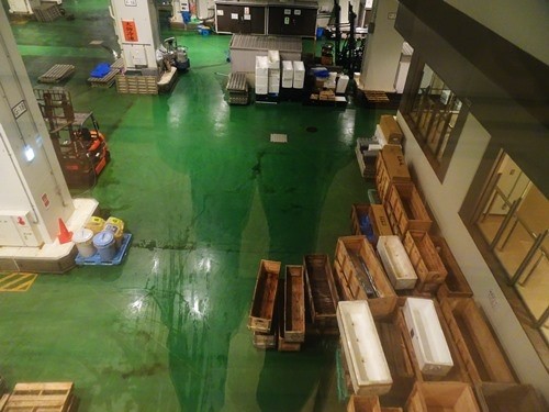 次に隣の棟の「仲卸」の様子を、ここも同じくガラス越しに見る。