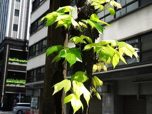 銀座通りは路地を含めて名前があり、色々な街路樹が植えてある。