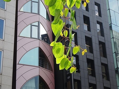今回は晴海通りの西側を歩いたが、東側には違う街路樹が植えられている。