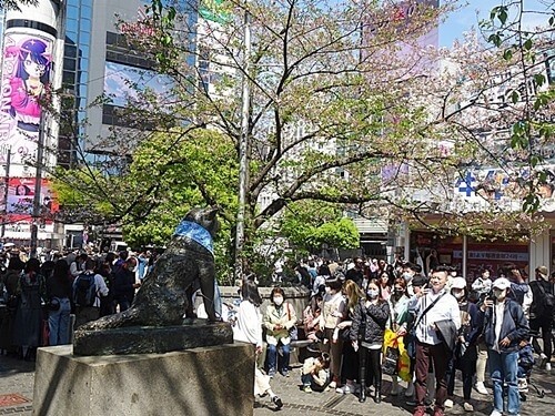 「ハチ公」の銅像の周りには、撮影待ちの人で溢れている。