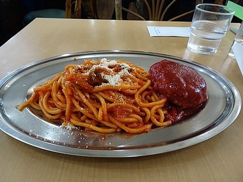 「入ろうか、どうしようか?」と迷ったが、中華を半分しか食べていなかったので入った。そして名物の「ハンバーグ・スパゲッテイ」を注文した。