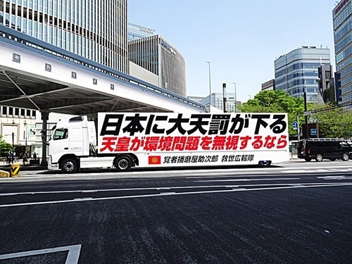 その下に「覚者の神知と天皇の威徳合体すれば・・・」と続き、商品のネット販売用のサイトは下の方にある。この会社は大きなボルボのトラックを10台、所有していて、街宣活動をしていたが、2017年末で活動を休止した。