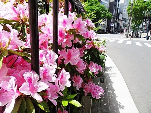 銀座4丁目にある真夏には「ミストを噴射する」小さな公園に、「ツツジ」の花が満開であった。「ツツジ」と「サツキ」は似ているので、違いをネットで調べてみた。