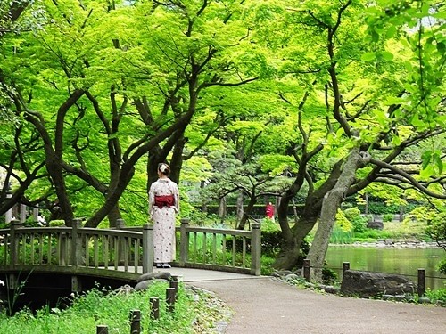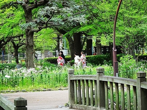 私は藤の花の撮影を終り、橋の上に差し掛かると、遠くに3人の和装の外国人女性が見えた。なぜこの日はこんなに和装の外国人が、日比谷公園にいるのだろうと不思議だった。
