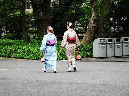 すると2人の若い外国人女性だった。2人は正式な和風姿で、着物に帯、足には白足袋で草履、手には巾着袋と全て完璧である。