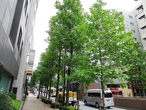 中央区の観光特派員のブログに『花椿通りを築地市場方面に進み、「銀座ときめき橋」陸橋を渡ったところにユリノキの街路樹がある』と書いてあった。この道もたまに歩くので、場所は分かっている。