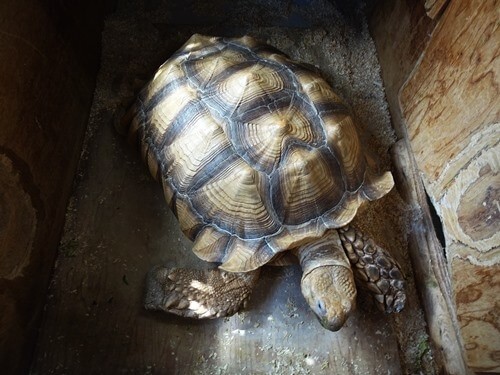 この亀の名前は「ボンちゃん」だそうだ。種類は「ケヅメリクガメ」だそうだ。