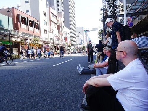 亀戸駅前の道路は、12時から「歩行者天国」となっていた。