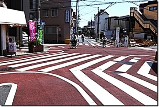 「日本一 譲り合いモデル交差点」という看板が出ている。