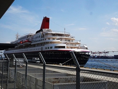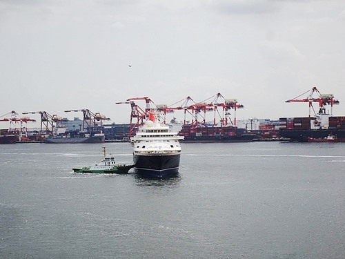 すると「にっぽん丸」が入港準備で、タグボートに押されていた。
